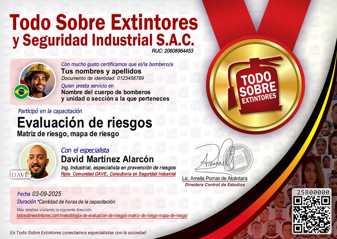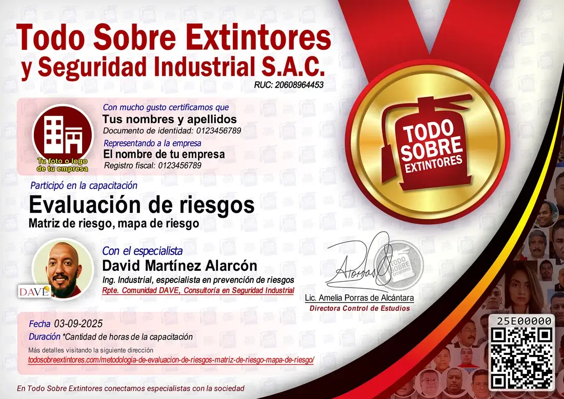Certificado de la capacitación Metodología de evaluación de riesgos, matriz de riesgo, mapa de riesgo