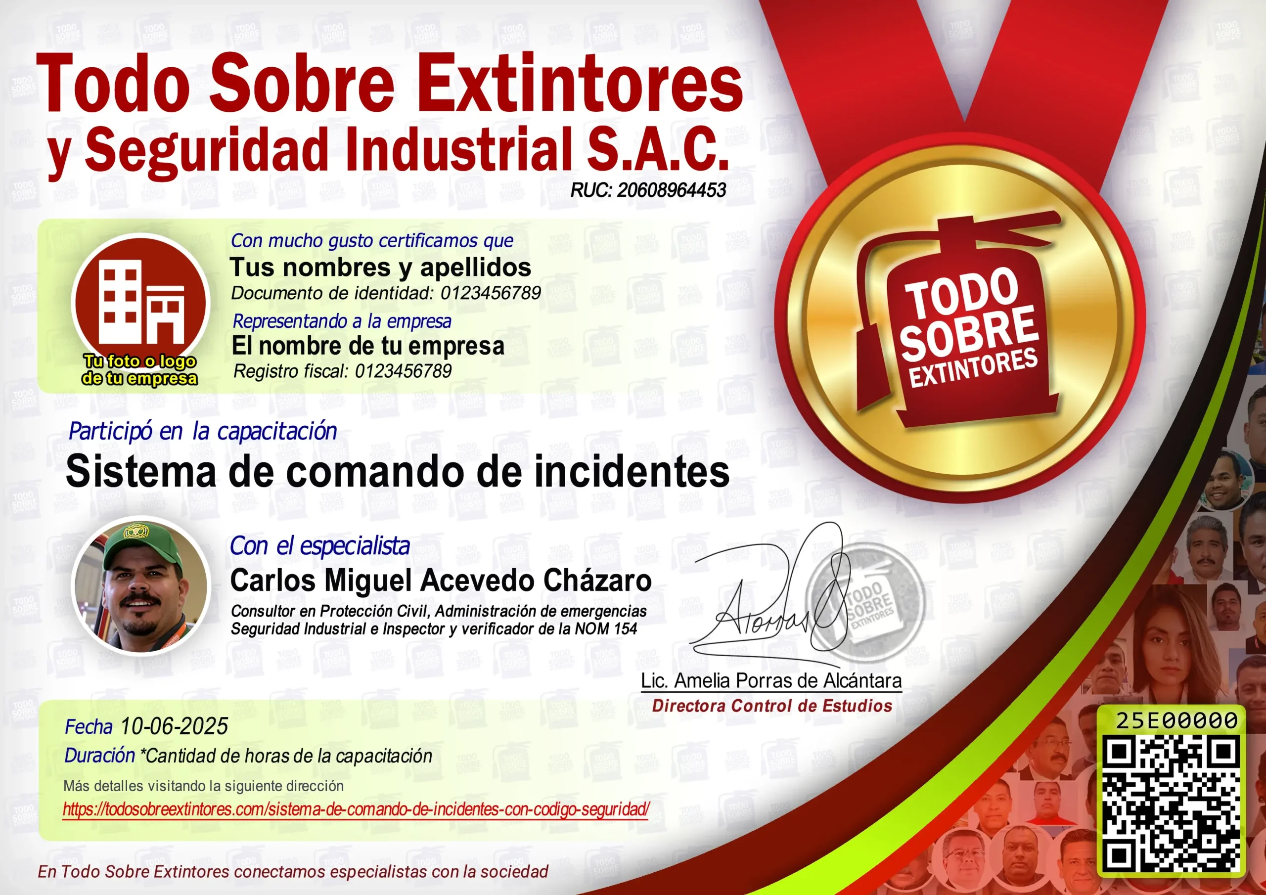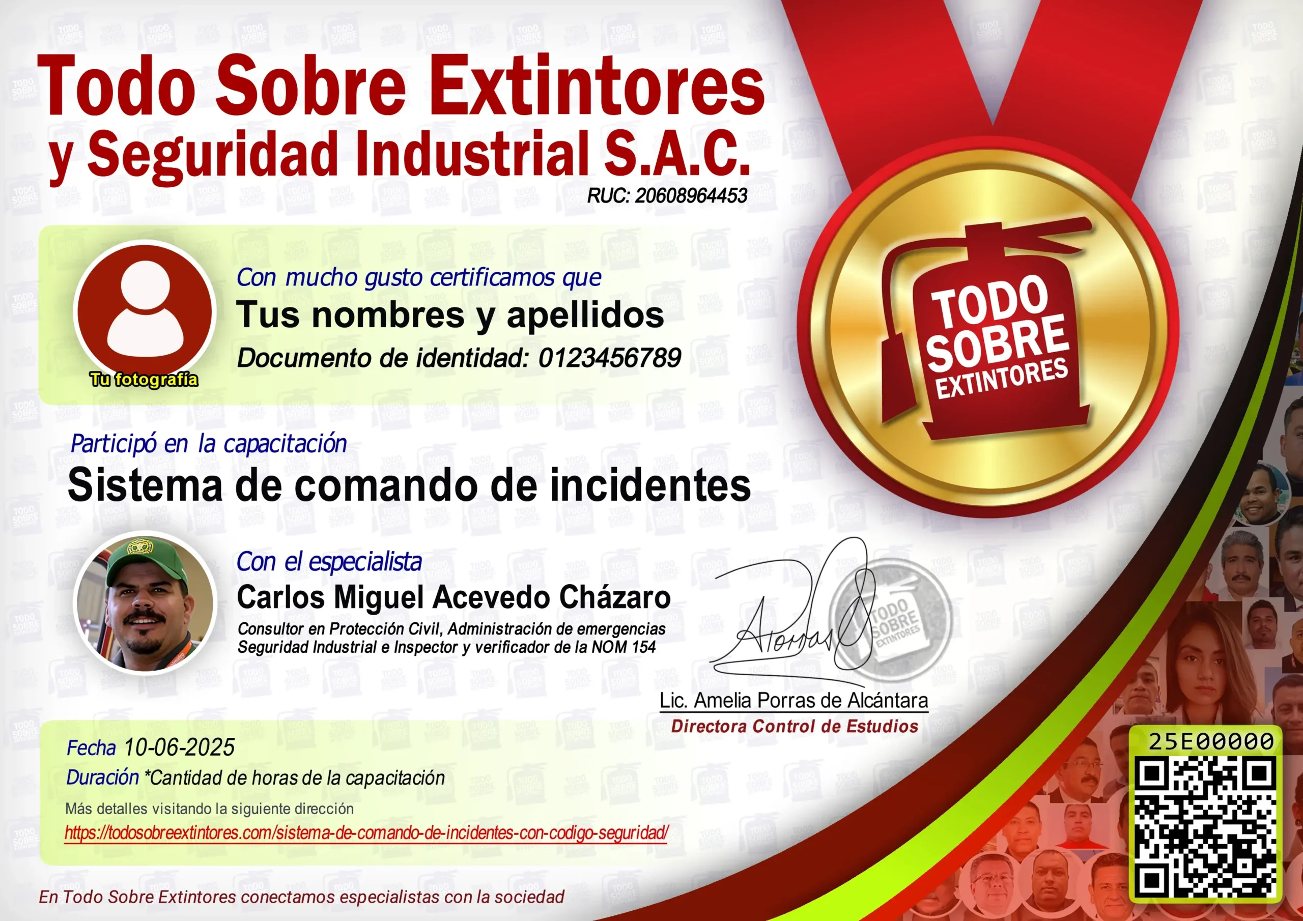 Certificado de la capacitación Sistema de comando de incidentes con Código Seguridad